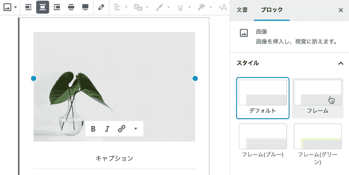 標準の「画像」ブロックで表示する画像にボックスシャドウを表示したり、画像の周囲に好みのカラーフレームを表示する機能などが拡張されます。