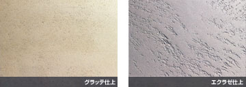 エクラゼ【ecrasee】木ゴテ仕上?木ゴテで表面を荒らした後、金ゴテで押え、平滑な面とざらつきのある面を出した仕上げです